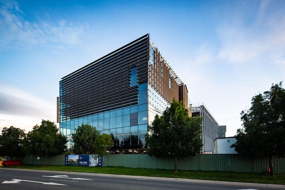 Curtain Wall Facade for a mixed use commercial precinct at Canberra Airport. Uses V&G 165CW.