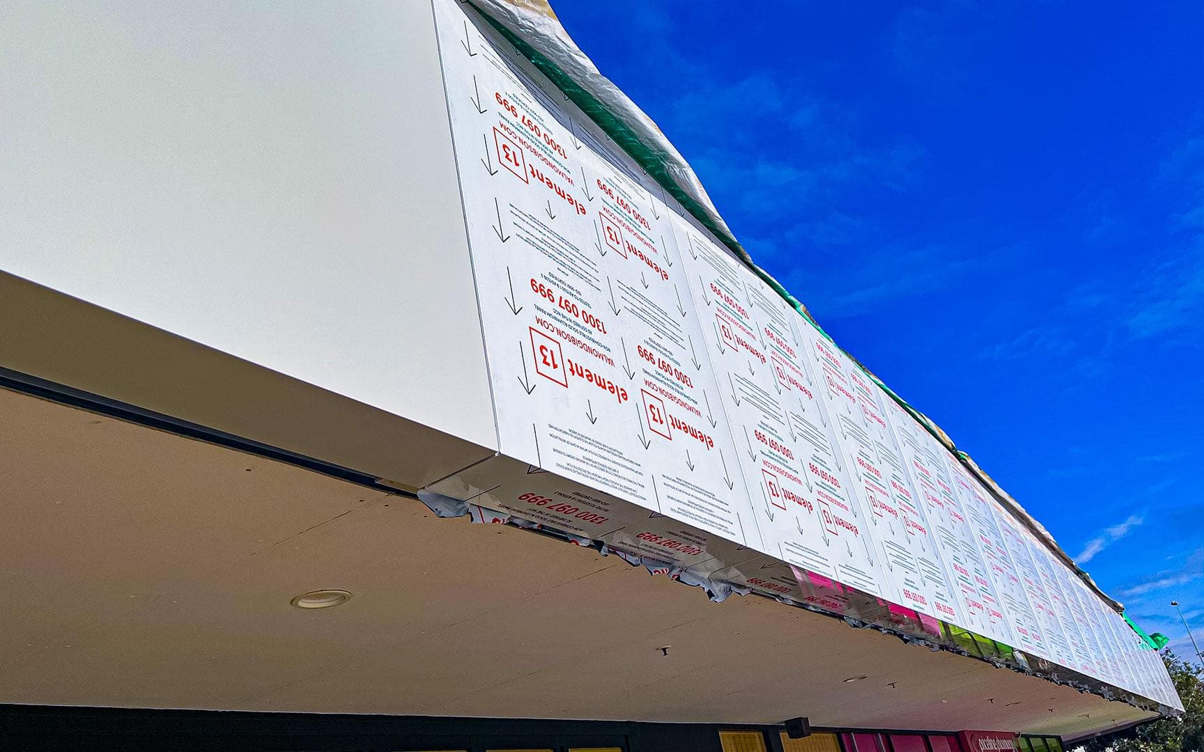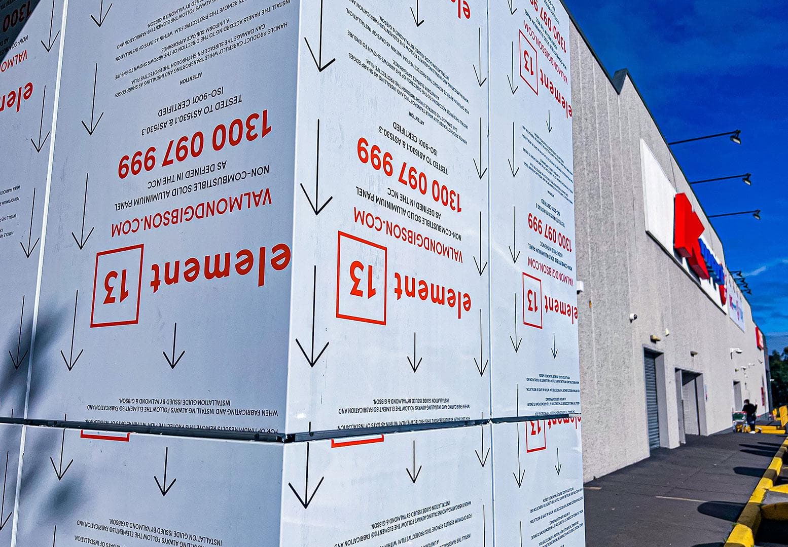 Recladding of a shopping centre in Casula. Uses element 13 in Ice 1003.
