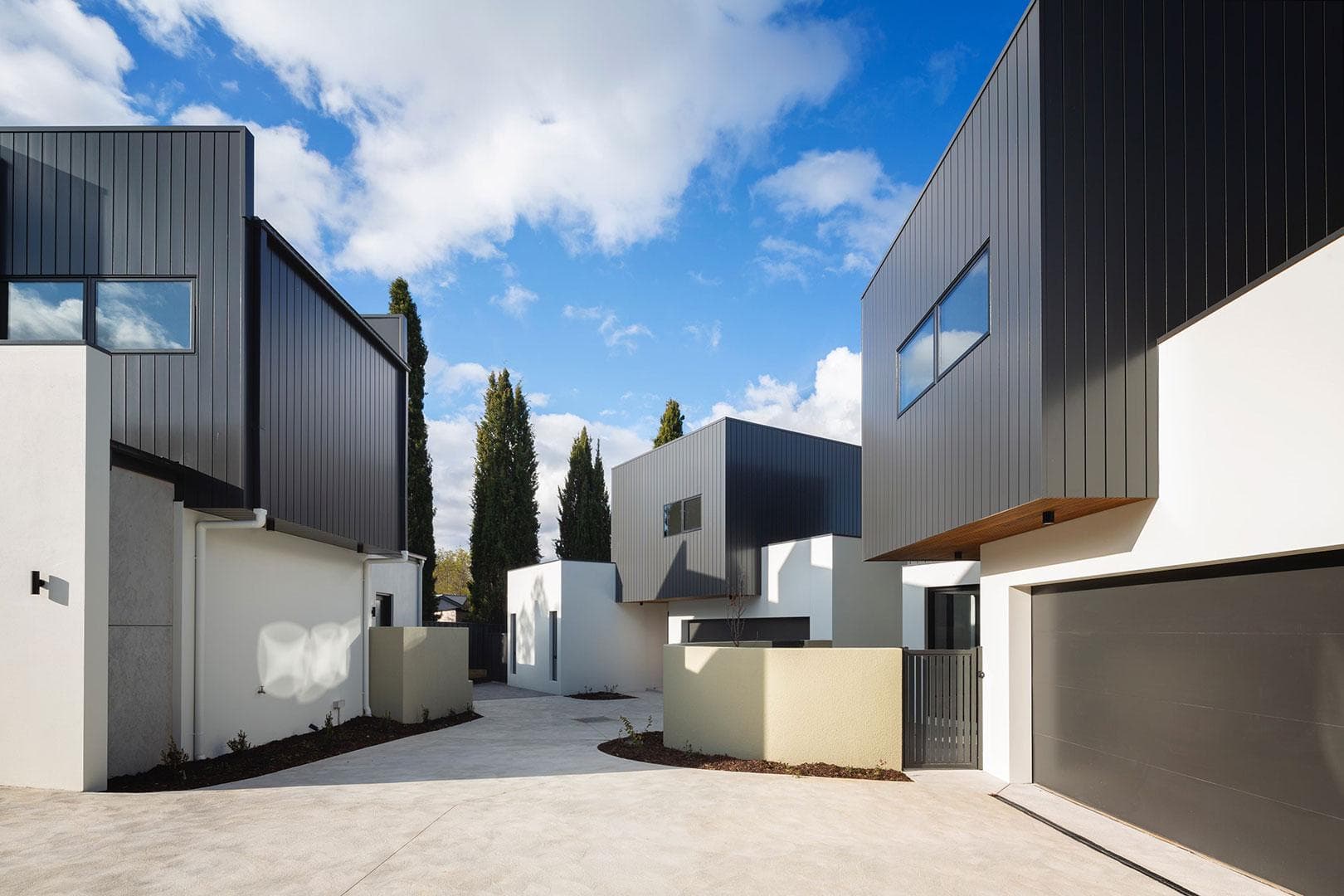 External cladding for a domestic residential in Curtin. Uses interloQ IQ160 in Monument Matt.