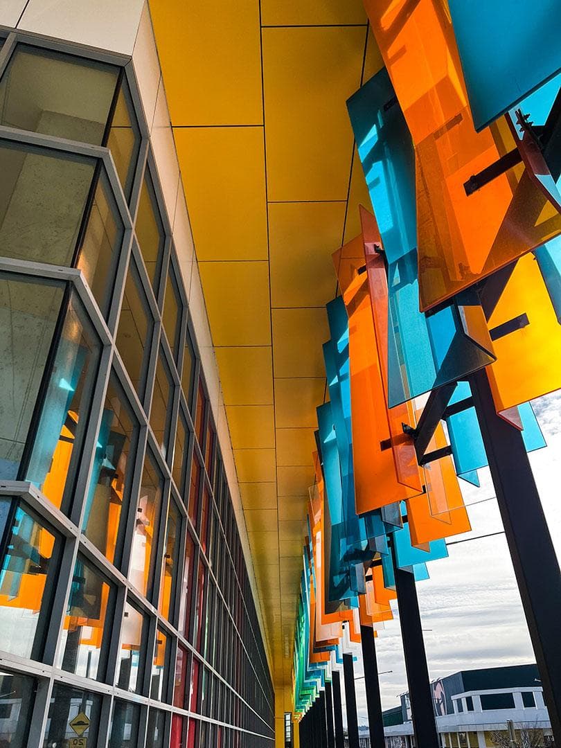 Recladding of an educational precinct in Gungahlin. Uses element13 in Salt 1002, Silver 3001, Slate 2002, Sulfur 1027, Rose 1021 & Solis 1028.