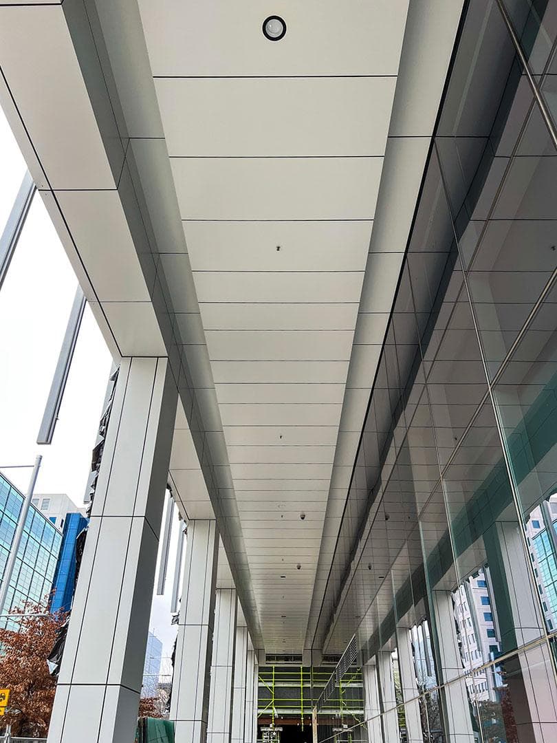 Recladding of a mixed-use commercial precinct. Uses element13 in Opal 1001 & Silver 3001.