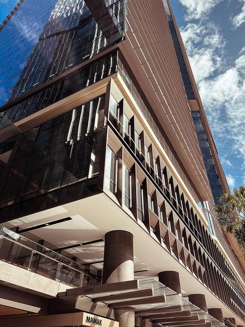 External cladding for the new Walker Corporation mixed-use commercial & office tower in Parramatta. Uses element13 in Calamine 3007.