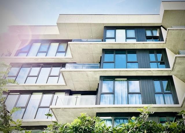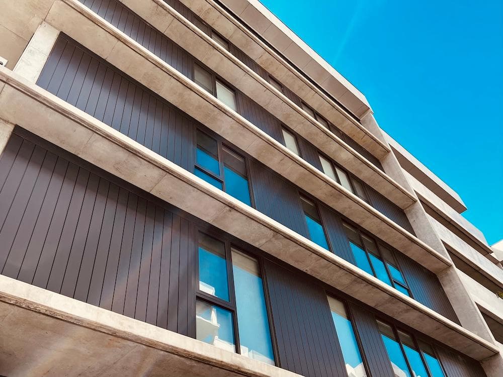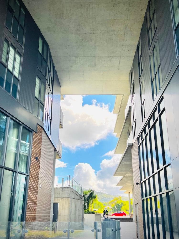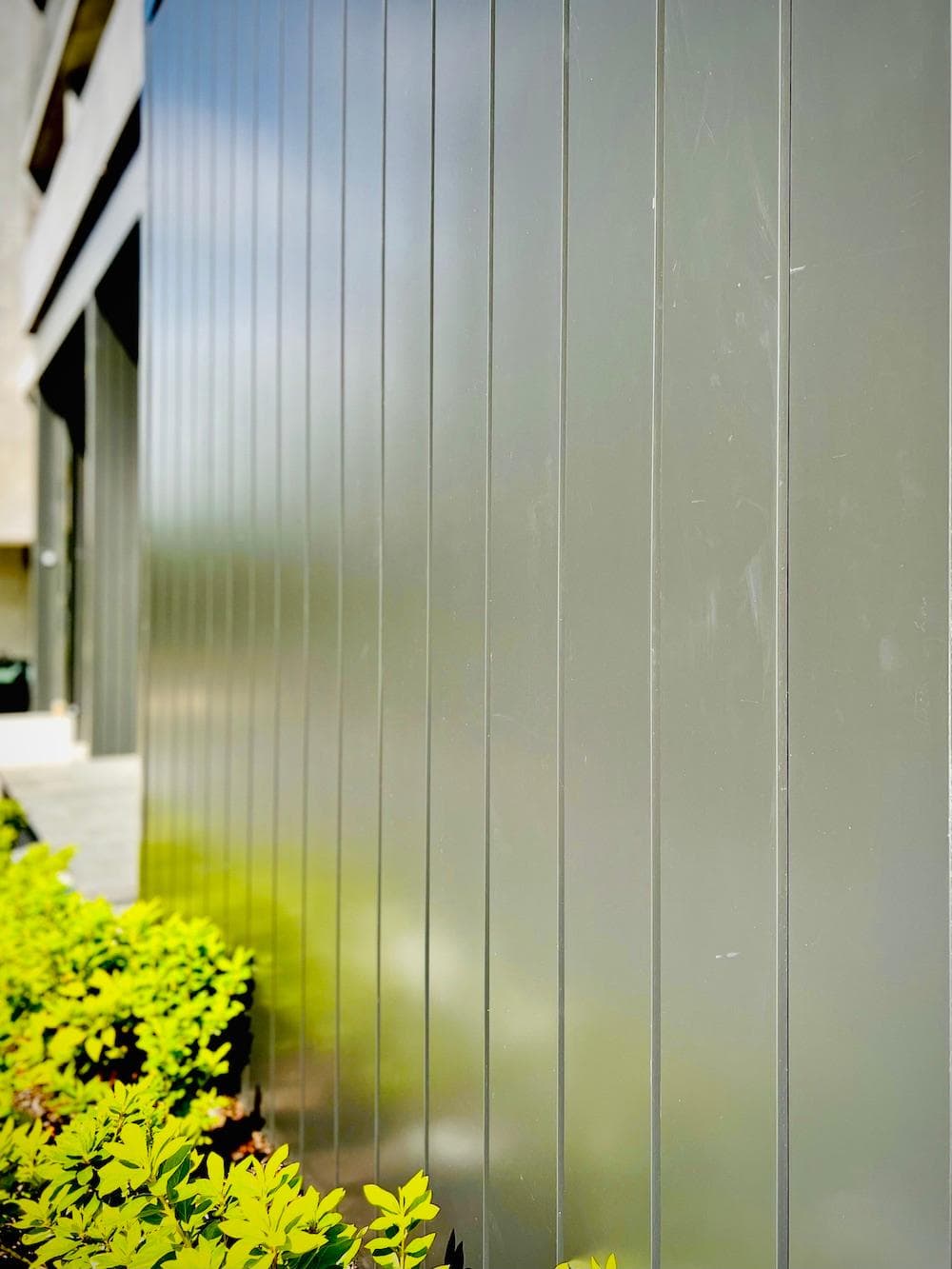 External cladding for a mixed-use residential precinct in Campbell. Uses interloQ IQ160 in Monument Matt.