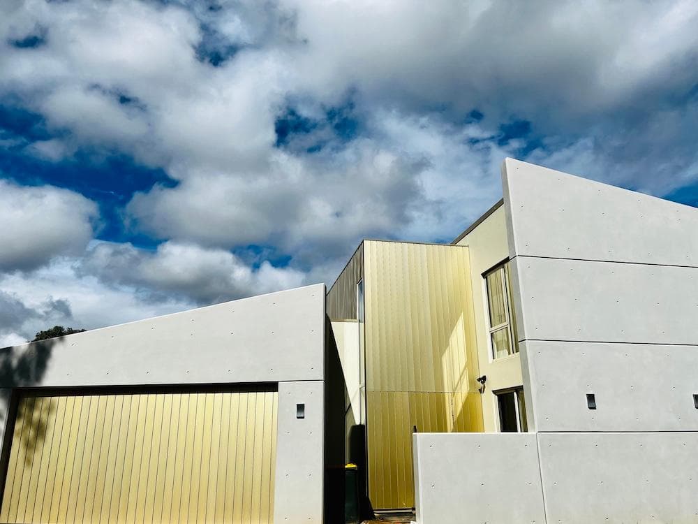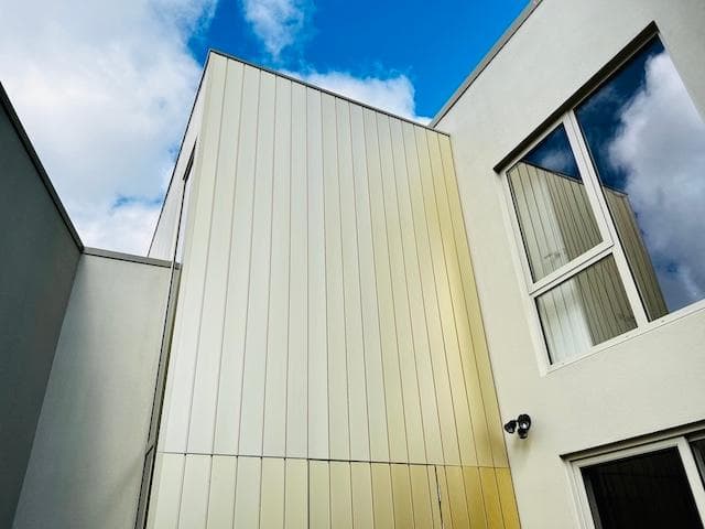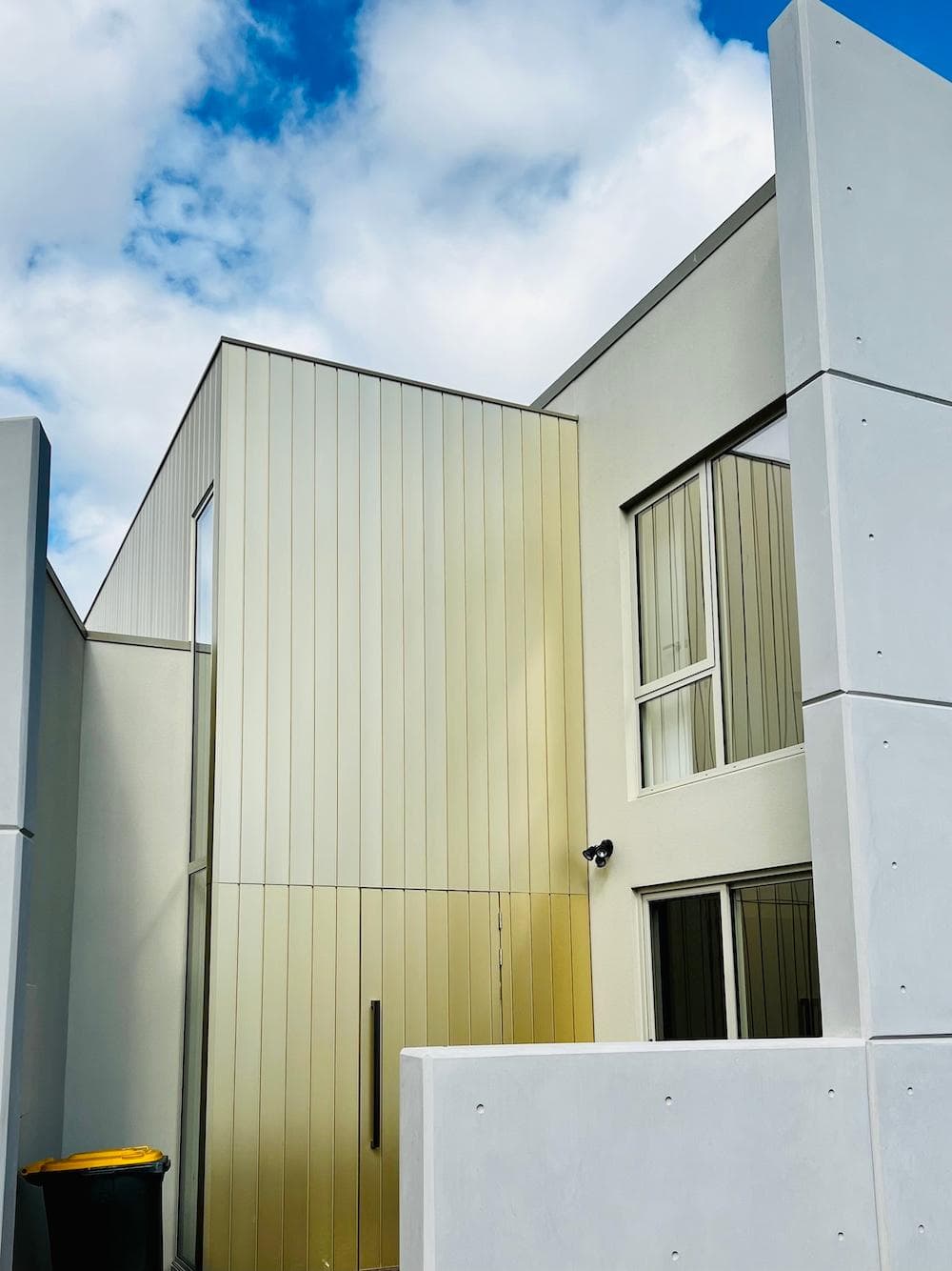 External cladding for a domestic residential in Watson. Uses interloQ IQ160 in Anodised Champagne Satin.